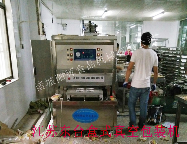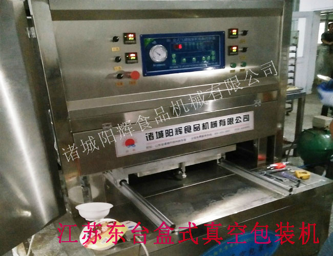 江蘇東臺盒式真空包裝機采用定制的盒子,對一些熟食品進行真空包裝??啥ㄖ瞥涞獨?。整機不銹鋼制品。