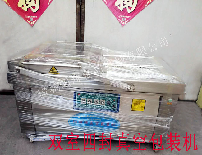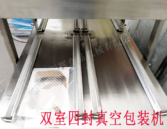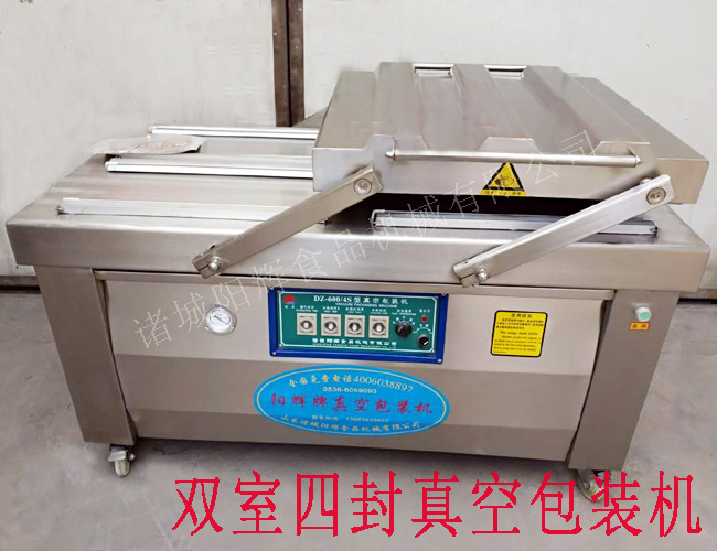這是一臺加寬型的DZ600-4S雙室四封真空包裝機(jī),客戶用來包裝牛腿肉的,本機(jī)共有8根封條,封條中心距特別要求加寬處理的,大家請看圖。