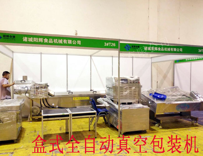 2018年7月25號,諸城陽輝食品機(jī)械公司攜盒式真空包裝機(jī)一臺、全自動連續(xù)真空包裝機(jī)一臺、異型真空包裝機(jī)一臺、立式真空包裝機(jī)一臺,前往青島國際會展中心,參加2018青島國際食品博覽會。從視頻中和照片中,大家可以看到,諸城陽輝在此次食品博覽會上共有兩個展位,分別是3#T27和3#T26.而視頻中出現(xiàn)的第一臺真空包裝機(jī)是DZ1000全自動連續(xù)真空包裝機(jī),第二臺真空包裝機(jī)是盒式真空包裝機(jī),第三臺真空包裝機(jī)是異型真空包裝機(jī)。