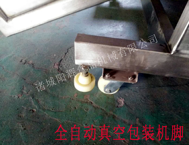 滾動(dòng)式真空包裝機(jī)有4只腳,每只腳有兩個(gè)輪子(圖8),一個(gè)用來(lái)固定支撐的,一個(gè)用來(lái)移動(dòng)的,使包裝機(jī)在正常使用和移動(dòng)的時(shí)候變的非常方便。
