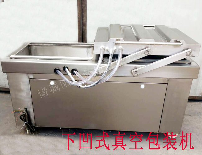 DZ700-2S雙室下凹式連續(xù)真空包裝機(jī),此真空包裝機(jī)是客戶特殊定制版自動擺蓋型(連續(xù)式),也就是說,真空蓋不用人工按下,只要裝填被包裝物就可以了,設(shè)置好的真空包裝機(jī),會連續(xù)自動來回擺動進(jìn)行包裝。下凹式真空包裝機(jī)也叫水產(chǎn)品真空包裝機(jī),主要特點是防水。是特別針對含水比例較大的食品進(jìn)行真空包裝,如:腌制品、醬制品、魚類、海草、蝦類、筍制品、水產(chǎn)品、液體液態(tài)產(chǎn)品、顆粒狀產(chǎn)品的真空包裝,以及需要成型的產(chǎn)品,可定制模具。下凹尺寸是根據(jù)客戶產(chǎn)品的大小量身定做的,所以大家不必?fù)?dān)心下凹尺寸問題。